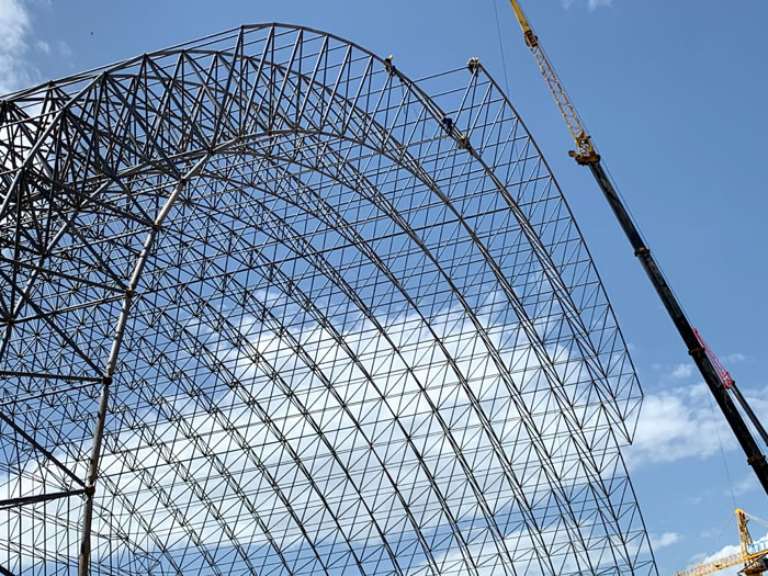 (2)网架加工前应对现场尺寸进行复测,确认无误后方可进行加工、安装;网架制作、运输、安装应遵守《空间网格结构技术规程》JGJ7-2010、《钢网架宜宾螺栓球节点》JG/T 10-2009、《钢网架宜宾螺栓球节点用高强度螺栓》 GB/T 16939-2016、《宜宾钢结构宜宾工程宜宾施工规范》 GB50755-2012、《宜宾钢结构宜宾工程施工质量验收标准》 GB50205-2020。